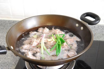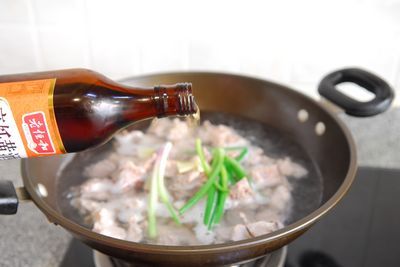 5、大火煮开后加适量黄酒和少许甜醋,转中小火加盖煮约20—30分钟。