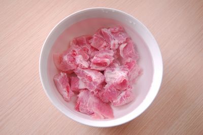 1、排骨用清水泡洗干净。