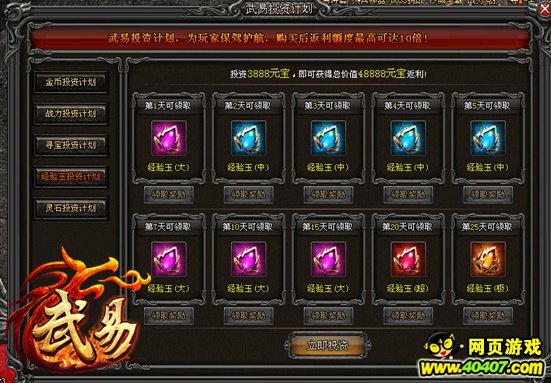多款投资计划任君选择,本小利大,投入少许元宝即可获得价值数十倍的道具奖励。作为懂投资的男人,面对6711《武易》中这超高回报率的多项投资计划怎么能无动于衷呢?英雄根据自己的需要选择不同的投资项目,只需支付少量本金,就可以在接下来的25天内逐步获取价值十数倍的游戏道具回报,真是太划算了!