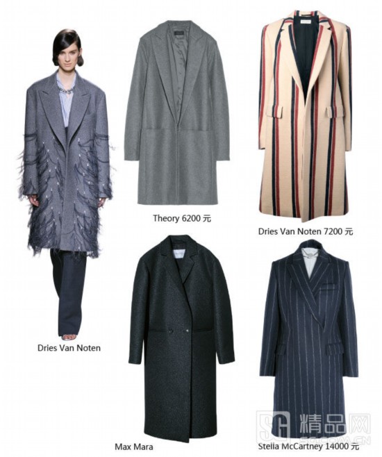 男装的元素在本季真是无孔不入,占大衣的比例尤其重,不管是西服大衣式的男装廓型还是牙签纹、威尔士亲王格等男装纹路。平挺的肩线设计和利落直筒线条彻底包裹住了女性的曲线,使肩膀更加宽阔夸张,极其男性化,搭配本季当红复古公文包别有一番风情。