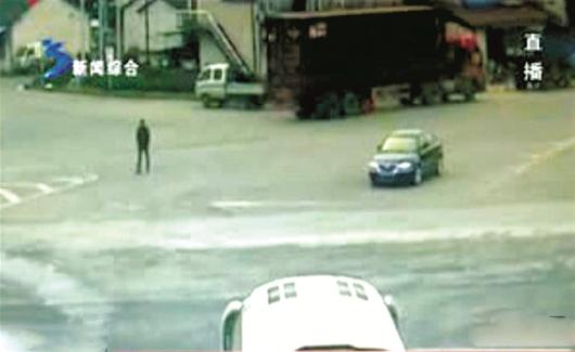 据浙江安吉交警提供的监控视频显示,11月16日下午3时44分,在306省道马家路岔口,一名男子慢悠悠地过马路。这时南北标的目的还是绿灯,来往的车辆并不多。在绿灯倒计时还剩3秒时,一辆轿车由南驶来并向左转,而另一辆货车从北向南行驶,两车车速均较快,就在两车要撞上的一刹那,大货车向右打标的目的避让,小轿车向左标的目的避让,但仍无法避免发生碰撞。