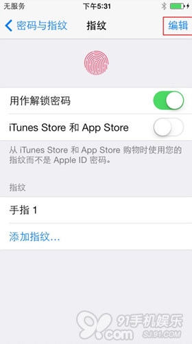 点击继续,可以对录好的指纹进行设置,也可以选择继续添加指纹,如果需要删除之前设置的指纹,可以点击右上角的编辑按钮