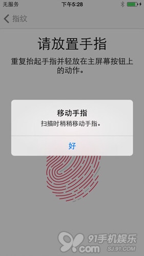 指纹不会一次就完成设置,需要根据提示重复动作,放置后再抬起手指,然后再放置
