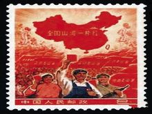 “文革”邮票除80枚正式发行的邮票外,尚有许多未发行票流在市场上,其中最著名的是《全国山河一片红》,此外比之身价高数量少的还有毛主席与林彪在一起的《全国胜利万岁》、《大一片红》和《黑题词》等,所有的这些未发行票现已成为集邮界争相追逐的珍品。特别是《全国山河一片红》[1] 近几年频频在拍卖市场上亮相,其价格扶摇直上,屡创天价。