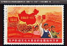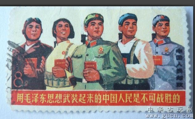 “文化大革命”邮票(简称“文革”邮票)记载着特殊时代镌刻下的特殊烙印。从1967年4月19日发行的第一套“文革”邮票《战无不胜的毛泽东思想》起,至1970年1月21日发行的最后一套“文革”邮票《革命青年的榜样———金训华》止,这期间共发行“文革”邮票19套80枚。